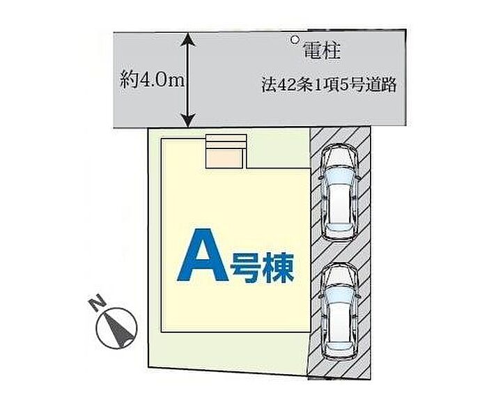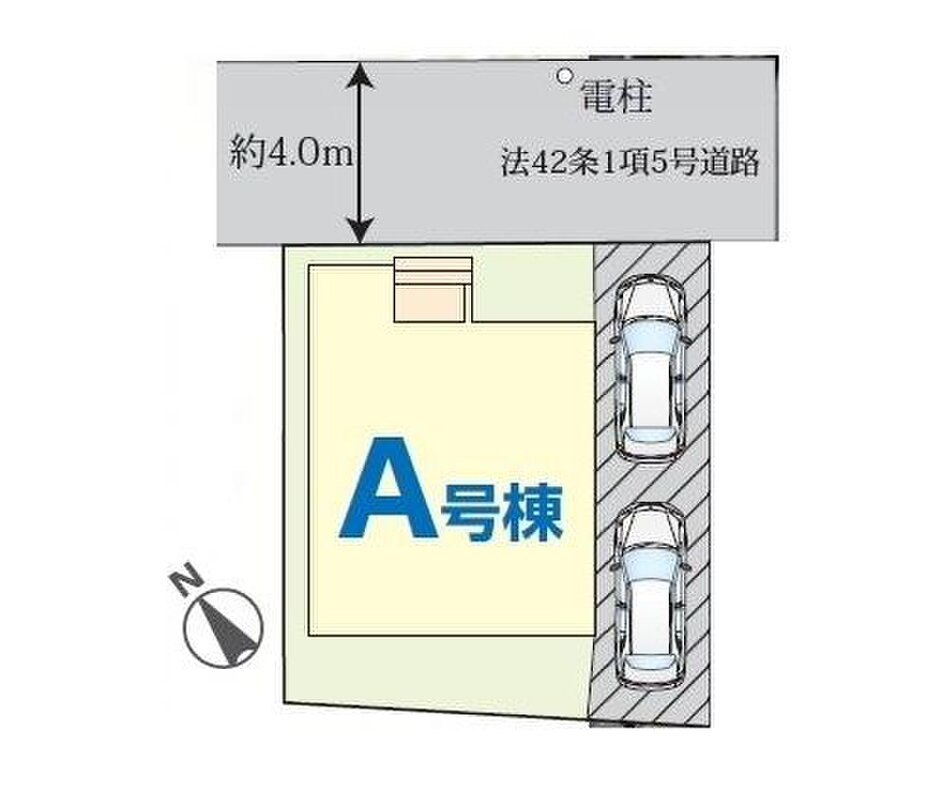 | 駐車場 | 2台 | 道路の幅員 | 道路幅:4m、アスファルト舗装、 北 4m 公道 |