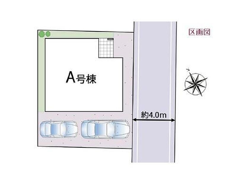 | 駐車場 | 2台 | 道路の幅員 | 道路幅:4m、アスファルト舗装、南東側約4m私道 |