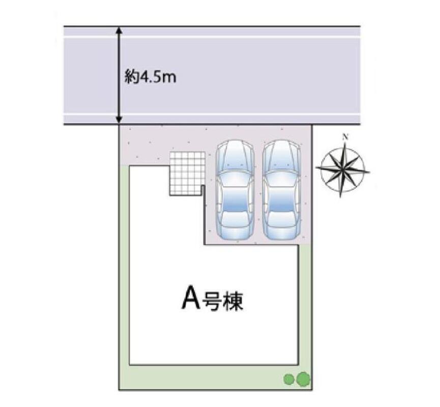 | 駐車場 | 2台 | 道路の幅員 | 道路幅:4.5m、アスファルト舗装、北側4.5m私道 |