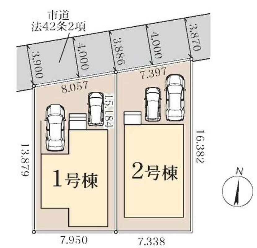| 駐車場 | 2台(※車種による) | 道路の幅員 | 道路幅:4m、アスファルト舗装、北側4m公道 |