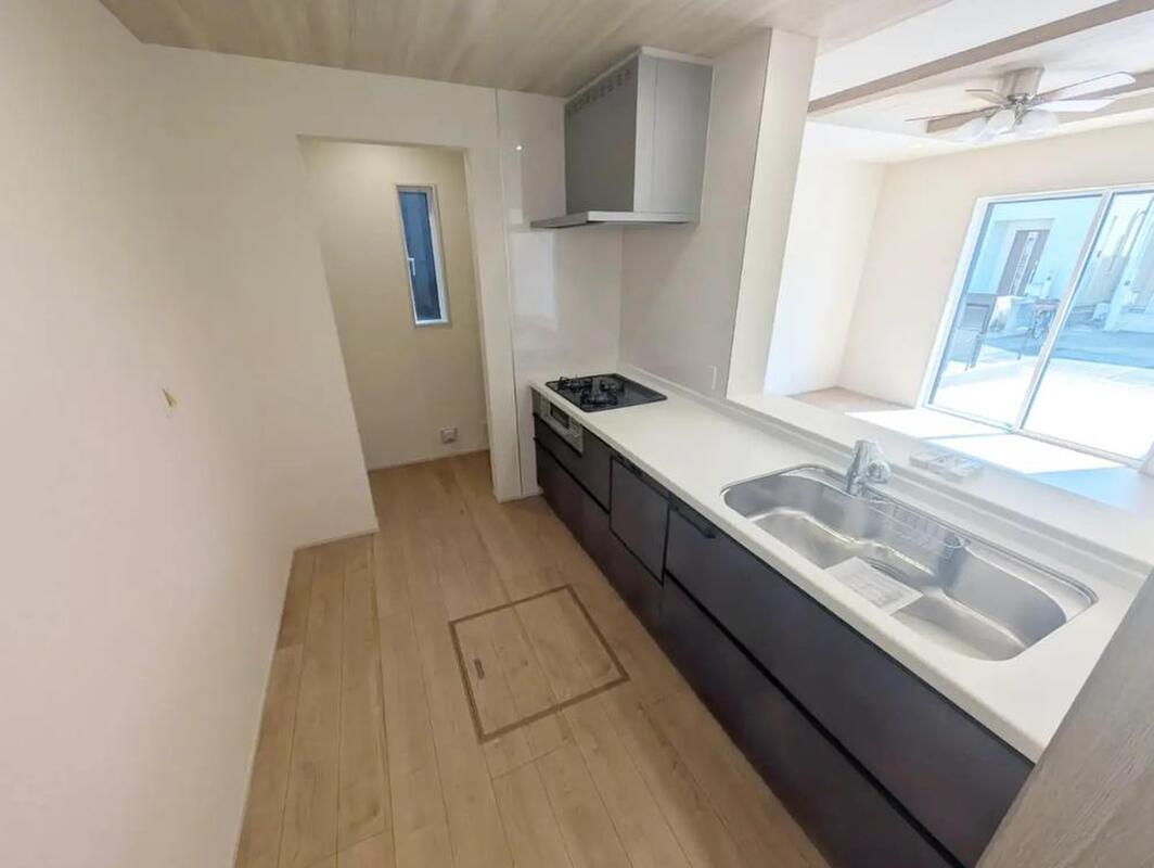 対面式キッチンは家族との大事なコミュニケーションも取りやすく自然と会話が増えるような設計となっています。床下の収納スペースもちょっとした物を収納できるので嬉しい魅力♪