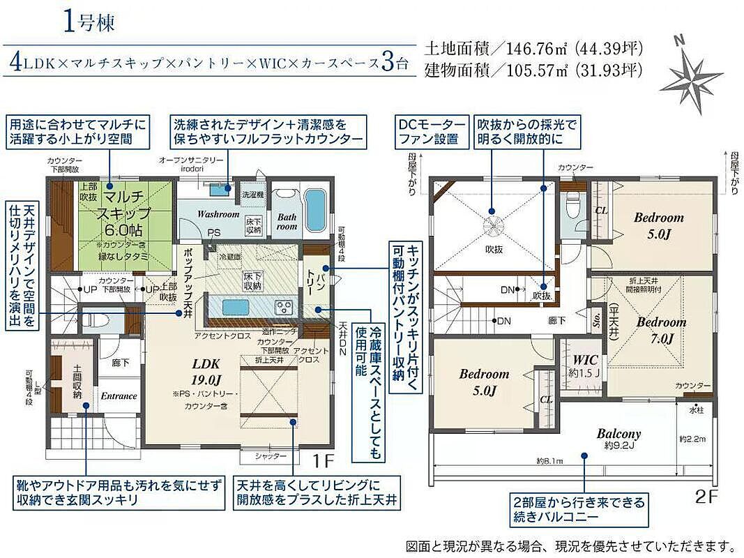 | 建物面積 | 105.57m2 | 土地面積 | 146.76m2 |