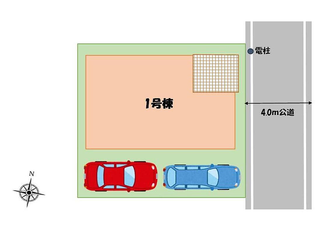 | 駐車場 | 2台 | 道路の幅員 | 道路幅:4m、アスファルト舗装、東側4m公道 |