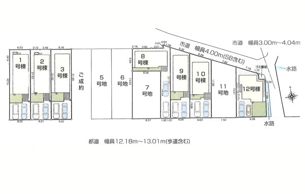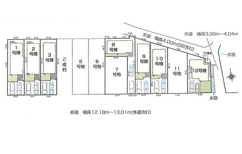 | 駐車場 | 2台 | 道路の幅員 | 3号棟:南12.1m /9号棟:南12.1m 北4m /10号棟:南12.1m 北東4m /8号棟:南12.1m /12号棟:南12.1m 北東4m /1号棟:南12.1m …他 |