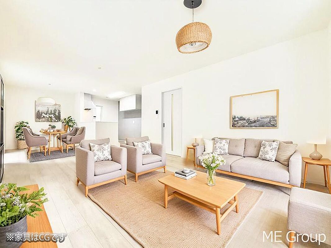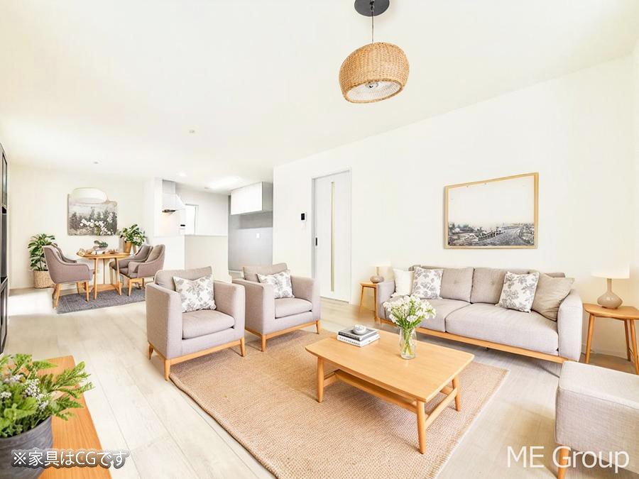 - ※完成予想図やCG合成画像は、門塀・植栽・庭・外観等、実際とは多少異なる場合があります。