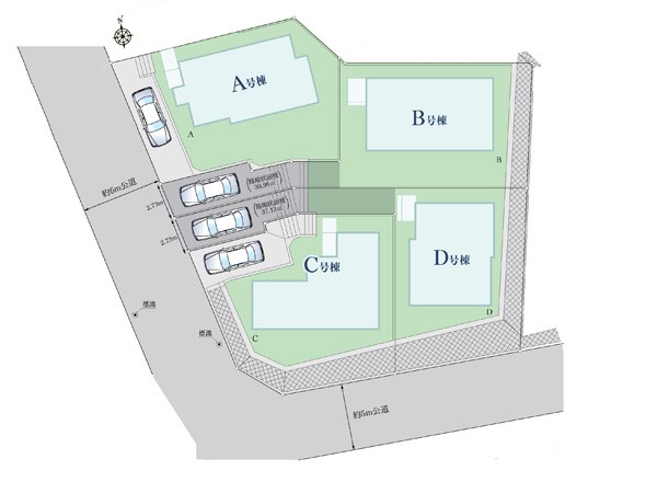 | 駐車場 | 1台 | 道路の幅員 | D号棟:南5m /C号棟:西6m 南5m |