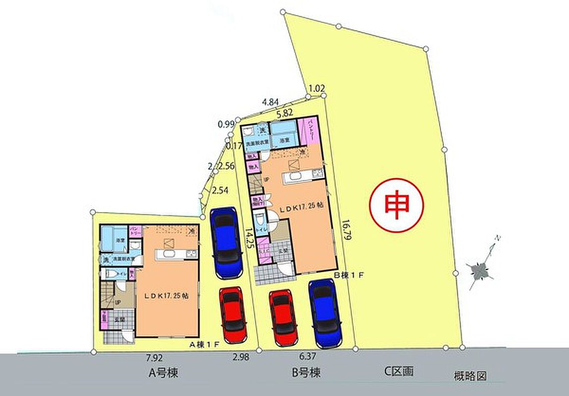| 駐車場 | 2台 | 道路の幅員 | A号棟:南東15m |