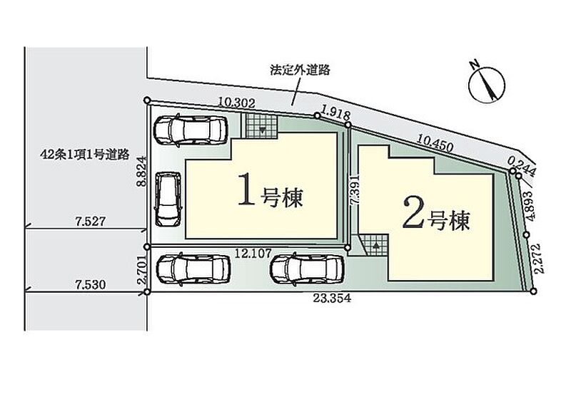| 駐車場 | 2台 | 道路の幅員 | 1号棟:北西7.5m |