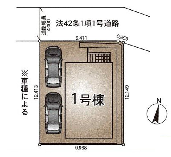 | 駐車場 | 2台 | 道路の幅員 | :北4m |