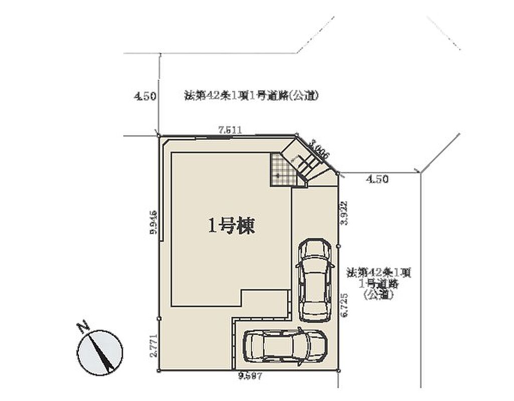 | 駐車場 | 2台 | 道路の幅員 | :北4.5m 東4.5m |
