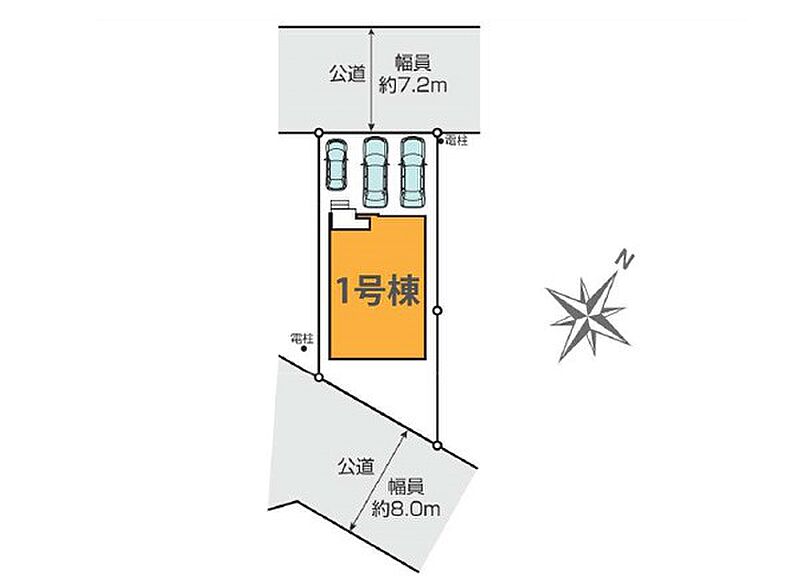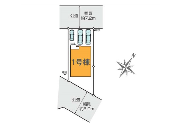 | 駐車場 | 3台 | 道路の幅員 | :北西7.2m 南東8m |