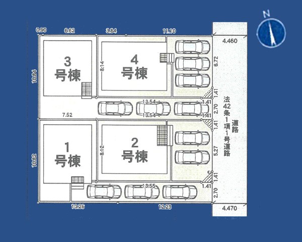 | 駐車場 | 3台 | 道路の幅員 | 2号棟:東4.4m /1号棟:東4.4m |