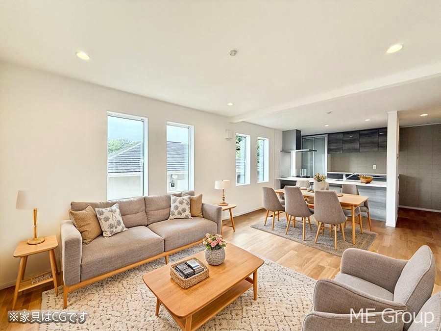 - ※完成予想図やCG合成画像は、門塀・植栽・庭・外観等、実際とは多少異なる場合があります。