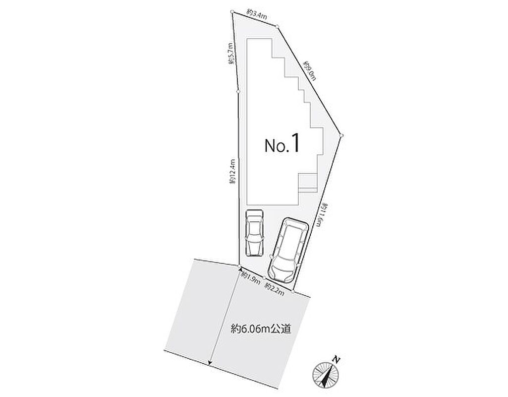 | 駐車場 | 2台 | 道路の幅員 | :南東6m |