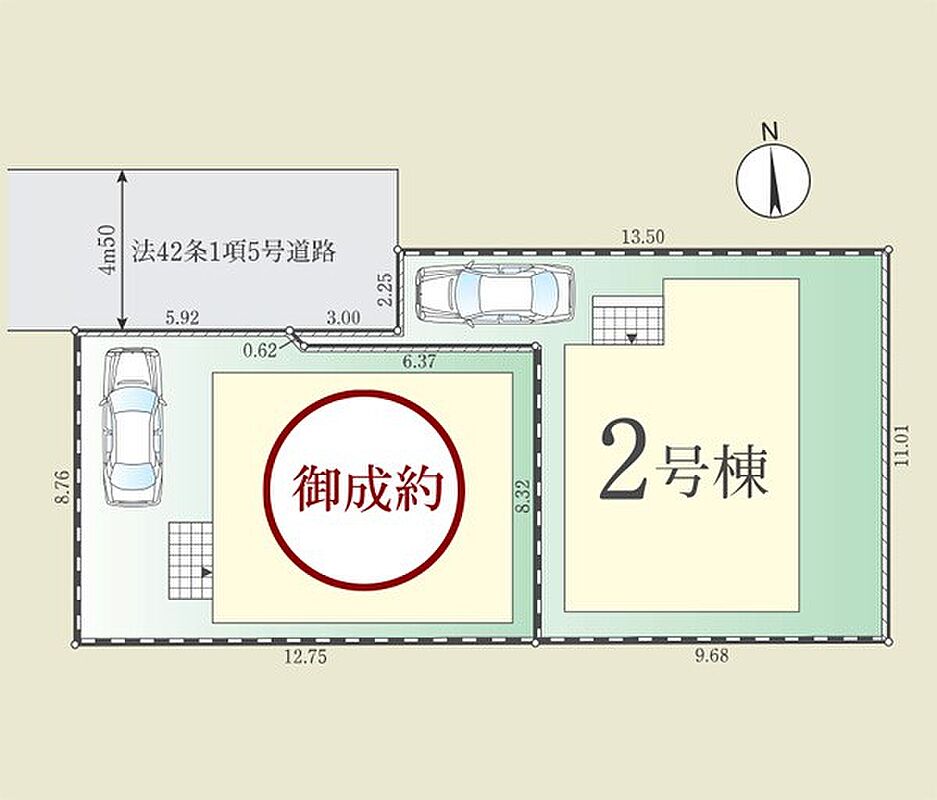 | 駐車場 | 1台 | 道路の幅員 | 2号棟:西4.5m |