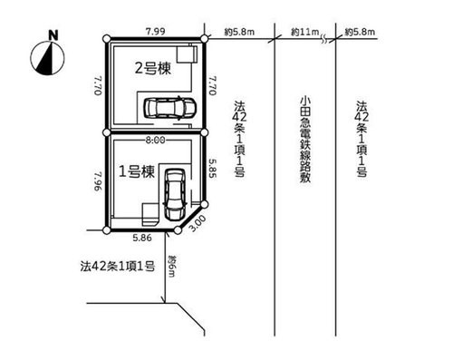 | 駐車場 | 1台 | 道路の幅員 | 2号棟:東5.8m /1号棟:東5.8m 南6m |