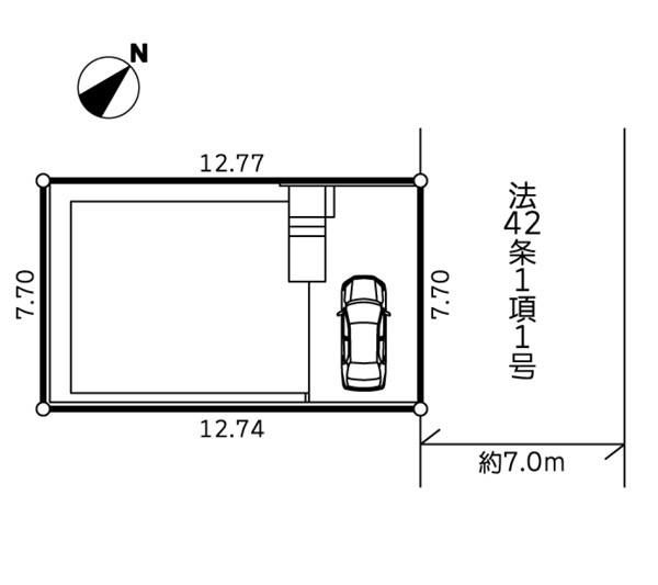 | 駐車場 | 1台 | 道路の幅員 | :北東7m |