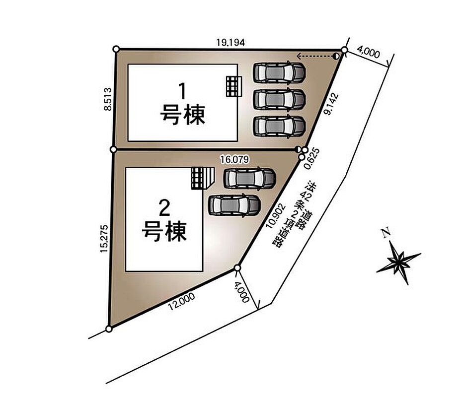 | 駐車場 | 2台 | 道路の幅員 | 2号棟:南東4m |