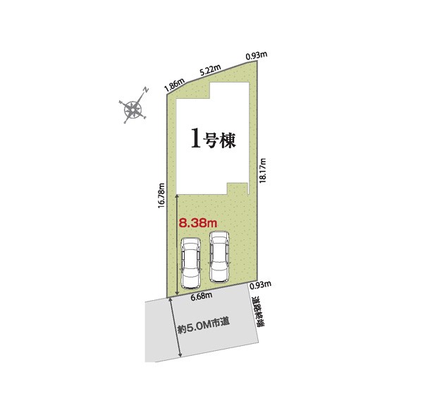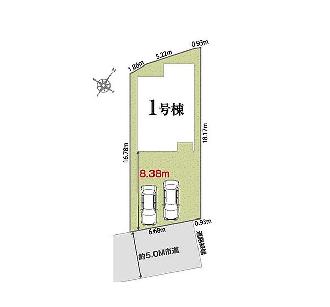 | 駐車場 | 2台 | 道路の幅員 | :南東5m |