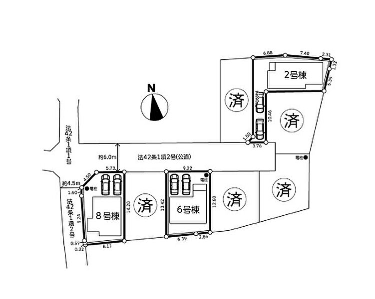 | 駐車場 | 2台 | 道路の幅員 | 6号棟:北6m /8号棟:北6m 西4.5m |