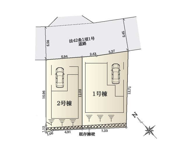 | 駐車場 | 1台 | 道路の幅員 | 2号棟:北東5.4m |