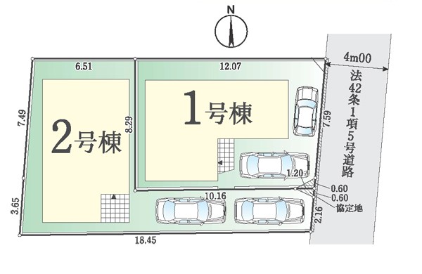 | 駐車場 | 2台 | 道路の幅員 | 1号棟:東4m /2号棟:東4m |