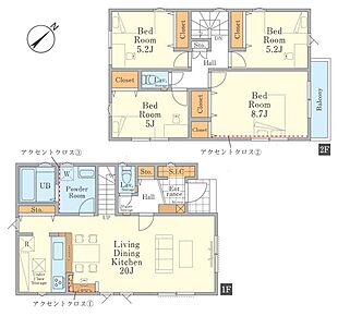 | 建物面積 | 102.26m2~104.81m2 | 土地面積 | 165.64m2~171.21m2 |