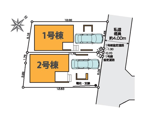 | 駐車場 | 1台 | 道路の幅員 | 1号棟:北東4m |