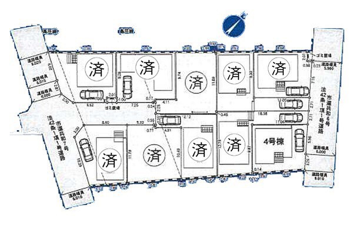 | 駐車場 | 1台 | 道路の幅員 | 4号棟:北東6m |