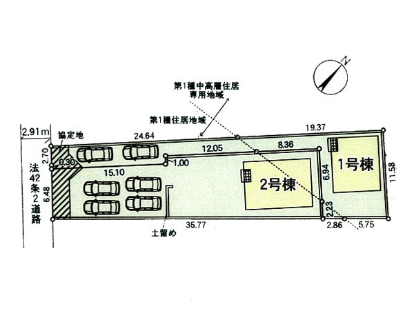 | 駐車場 | 2台 | 道路の幅員 | 1号棟:南西2.9m |