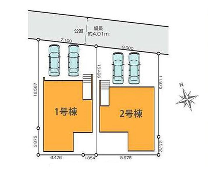 | 駐車場 | 2台 | 道路の幅員 | 2号棟:北東4m |