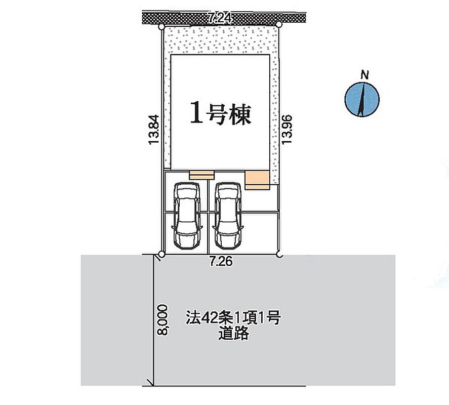 | 駐車場 | 2台 | 道路の幅員 | 1号棟:南8m |
