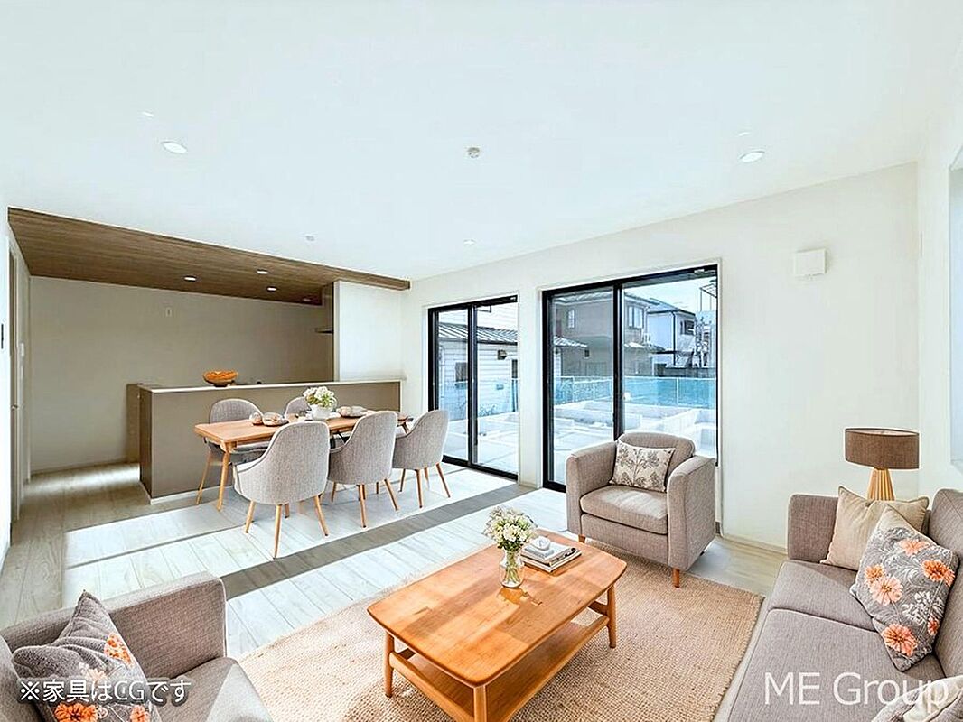- ※完成予想図やCG合成画像は、門塀・植栽・庭・外観等、実際とは多少異なる場合があります。