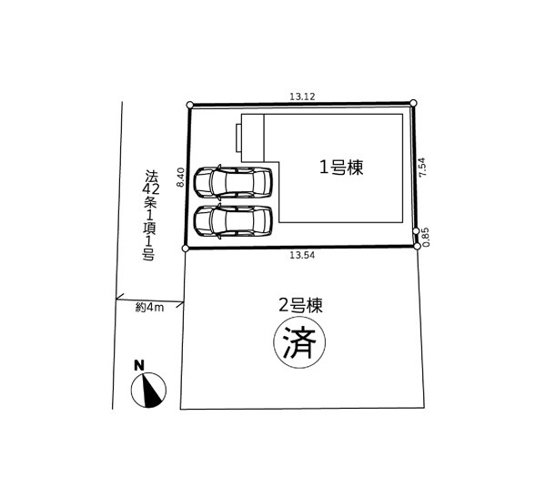 | 駐車場 | 2台 | 道路の幅員 | 1号棟:北西4m |