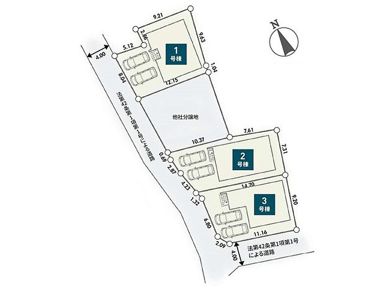 | 駐車場 | 2台 | 道路の幅員 | 3号棟:西4m |