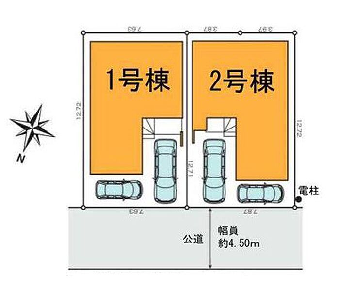 | 駐車場 | 2台 | 道路の幅員 | 1号棟:北西4.5m |