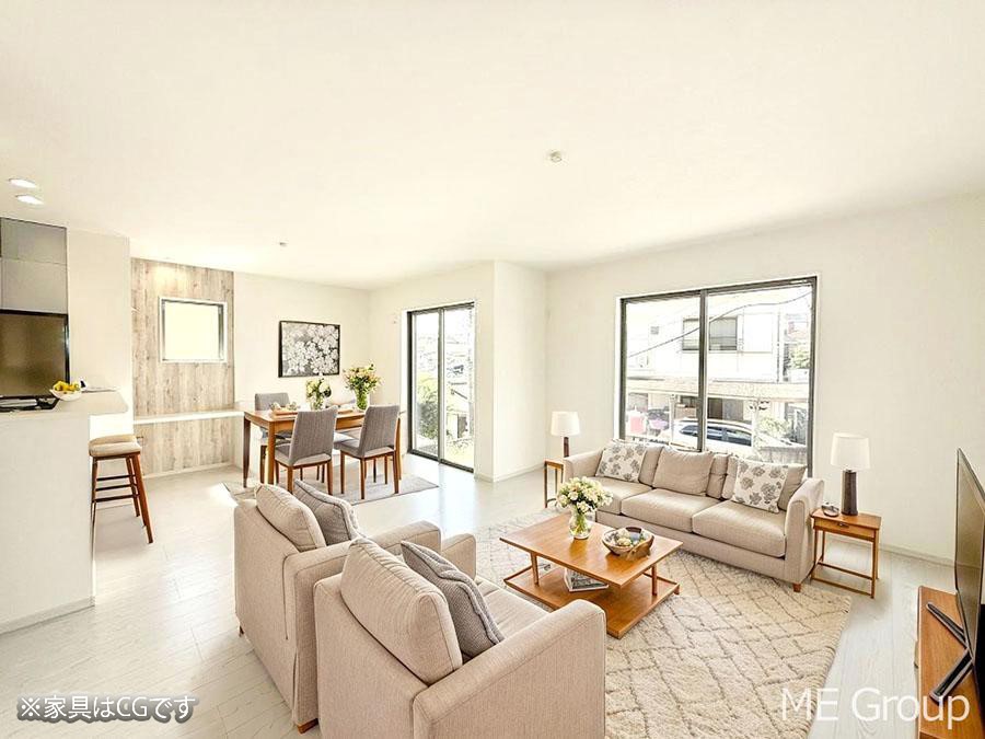 - ※完成予想図やCG合成画像は、門塀・植栽・庭・外観等、実際とは多少異なる場合があります。