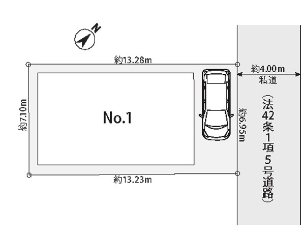 | 駐車場 | 2台 | 道路の幅員 | 1号棟:北東4m |