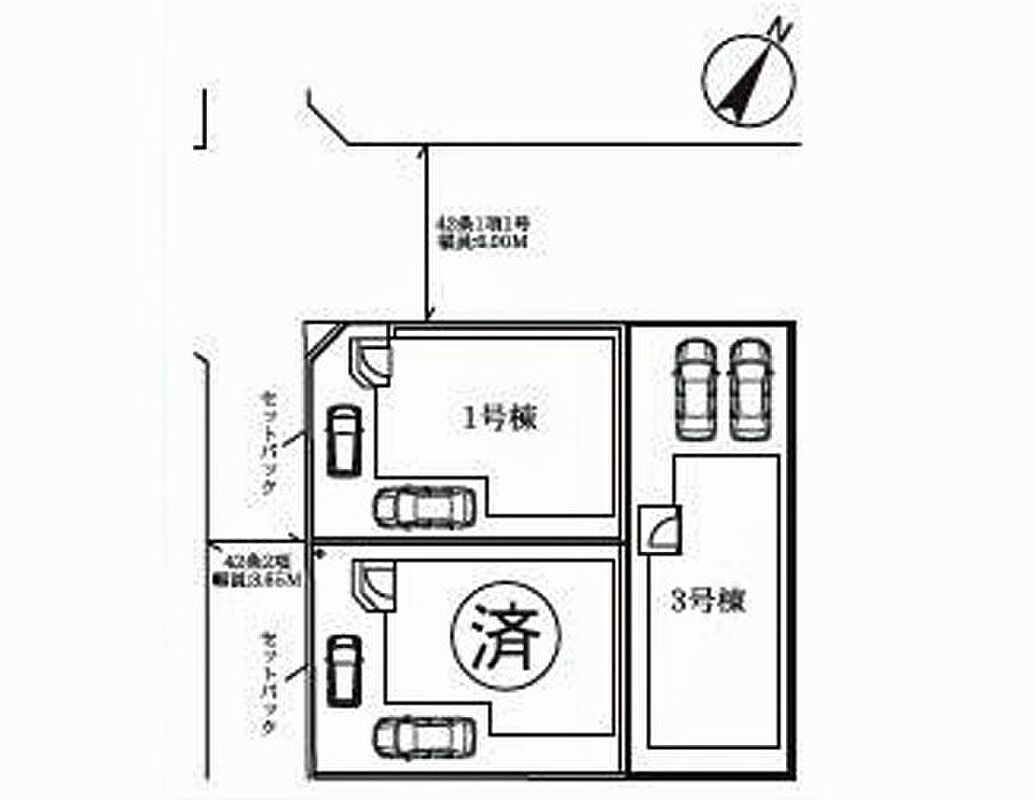 | 駐車場 | 2台 | 道路の幅員 | 3号棟:北西6m |