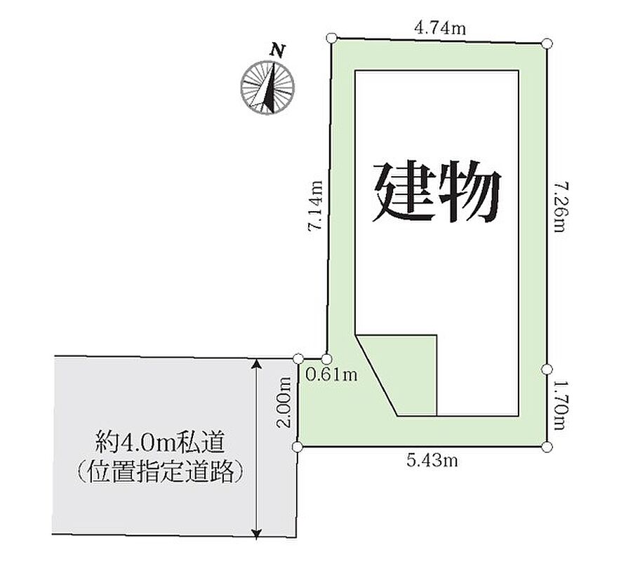| 駐車場 | - | 道路の幅員 | :西4m |