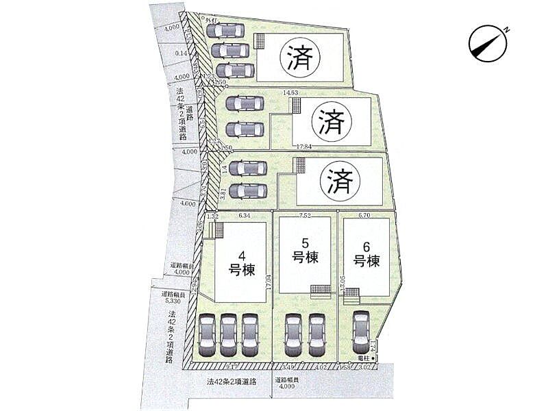 | 駐車場 | 3台 | 道路の幅員 | 5号棟:南東3.5m /4号棟:南西3.1m 南東3.5m /6号棟:南東3.5m |