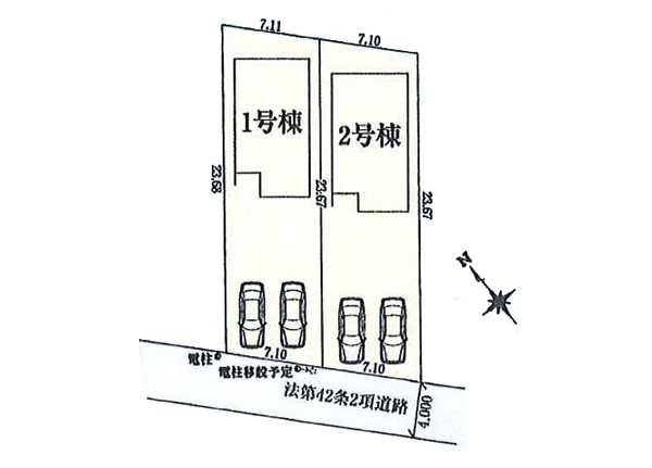 | 駐車場 | 2台 | 道路の幅員 | 2号棟:南西4m |