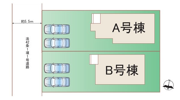 | 駐車場 | 2台 | 道路の幅員 | B号棟:西5.5m /A号棟:西5.5m |