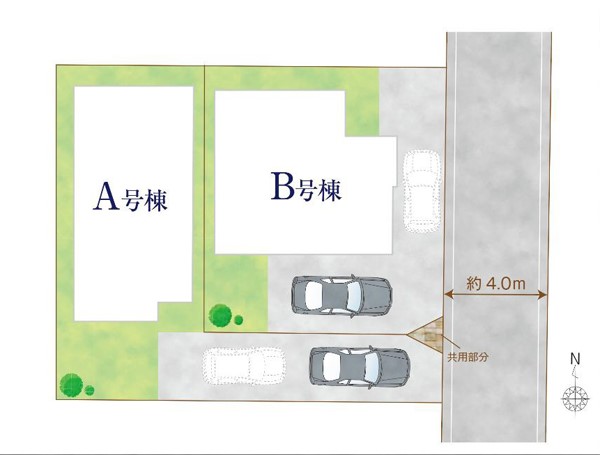 | 駐車場 | 2台 | 道路の幅員 | B号棟:東4m |