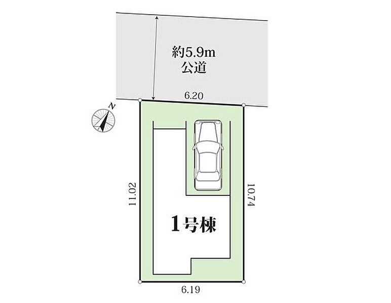 | 駐車場 | 1台 | 道路の幅員 | :北5.1m |