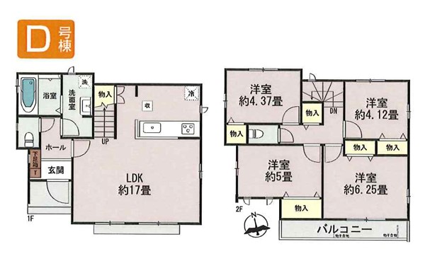 D号棟 間取り 4LDK 価格 5250万円 建物面積 86.53m2 土地面積 110.26m2 -