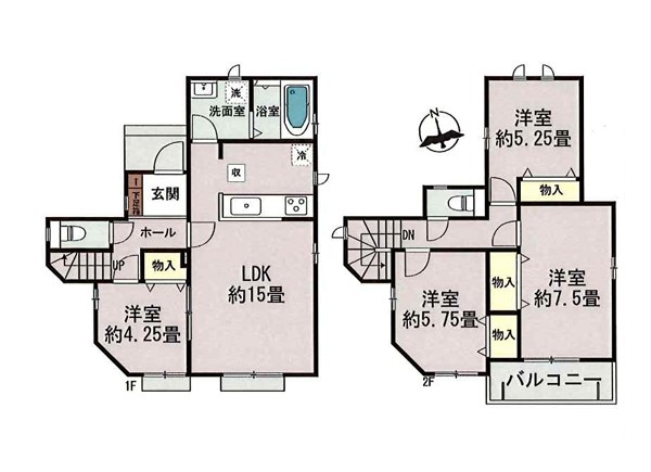 B号棟 間取り 4LDK 価格 5290万円 建物面積 90.25m2 土地面積 105.02m2 -