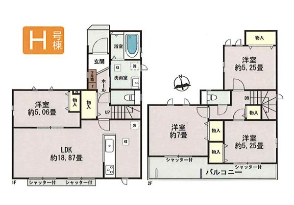 H号棟 間取り 4LDK 価格 5490万円 建物面積 92.95m2 土地面積 110.02m2