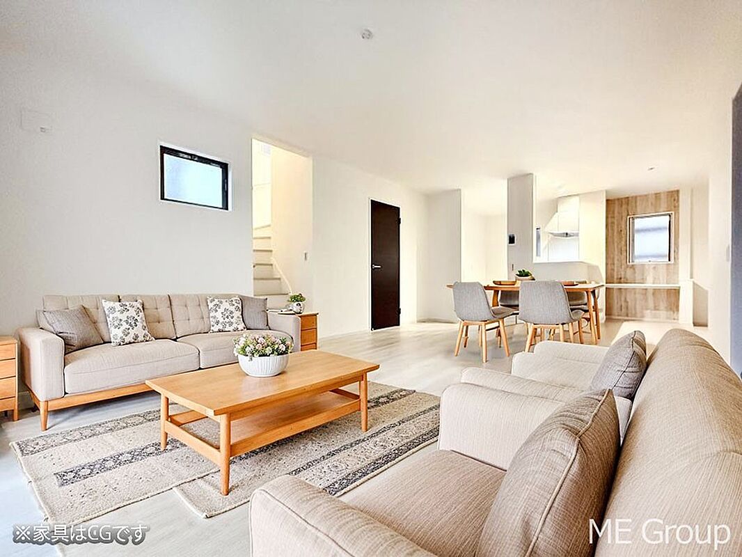 - ※完成予想図やCG合成画像は、門塀・植栽・庭・外観等、実際とは多少異なる場合があります。