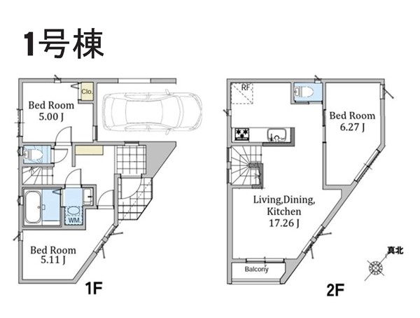 | 駐車場 | 1台 | 道路の幅員 | 1号棟:東6m |